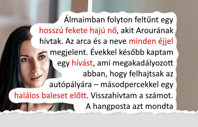 - Kb. 20 éves voltam, mikor folyton egy Aurora nevű nőről álmodtam. Hosszú, fekete haja volt, feltűnő arca, mindig ugyanaz. Különböző álom, de ugyanaz a nő. Zavartan ébredtem fel, próbáltam online rákeresni a nevére, azon tűnődtem, miért tűnik ennyire valóságosnak. Néhány hónap után eltűnt az álmaimból, el is feledkeztem róla. Évekkel később, 2009 halloweenján az autómban voltam a benzinkúton. Fel akartam hajtani az autópályára, mikor hívtak egy ismeretlen számról. Senki sem szólt bele, egy pillanatra megálltam. A mögöttem lévő autó dudált, majd kikerült és másodpercekkel később összeütközött egy másik autóval. Mindkét sofőr meghalt. Ha akkor nem állok meg, én lettem volna az.