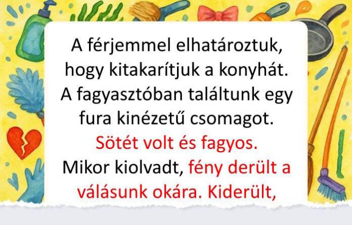 • A férjemmel elhatároztuk, hogy kitakarítjuk a konyhát. A fagyasztóban találtunk egy fura kinézetű csomagot. Sötét volt és fagyos. Mikor kiolvadt, fény derült a válásunk okára. Kiderült, hogy fekete neccharisnya. Én nem viselek ilyesmit. Kiderült, hogy a szeretője, aki a kolléganője volt, milyen találékony teremtés. Azt olvasta, hogy ha a fagyasztóba teszi a neccharisnyát, attól tartósabb lesz. Végül viszont nálunk felejtette, és miután a férjem szakított vele, puszta rosszindulatból nem szólt erről.