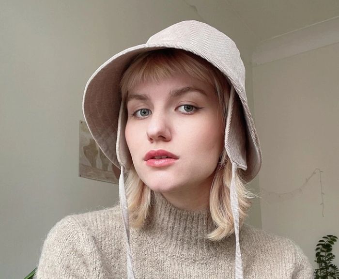 3. “Ezt a téli, kordbársony kalapot a kedvenc bézs színemben készítettem el. Belül filc bélése van, és fülvédők is kerültek rá.”