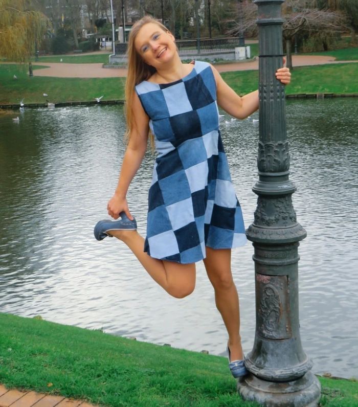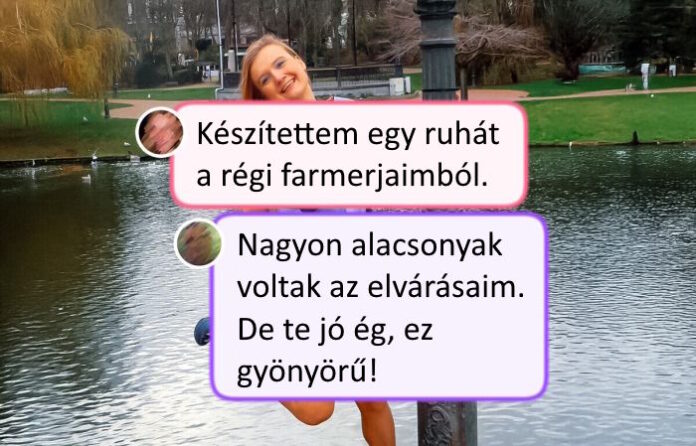 1. “Készítettem egy patchwork ruhát a régi farmerjaimból.”