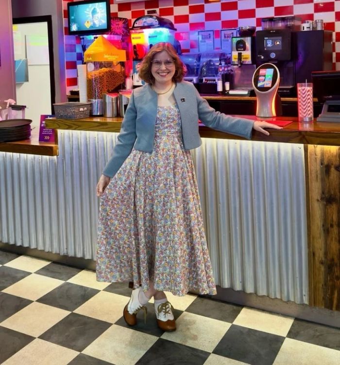 6. “Találtam egy férfi öltönyt a turkálóban, és arra gondoltam, át tudom alakítani egy női blézernek és szoknyának. Íme, a divatos együttes, amit készítettem.”