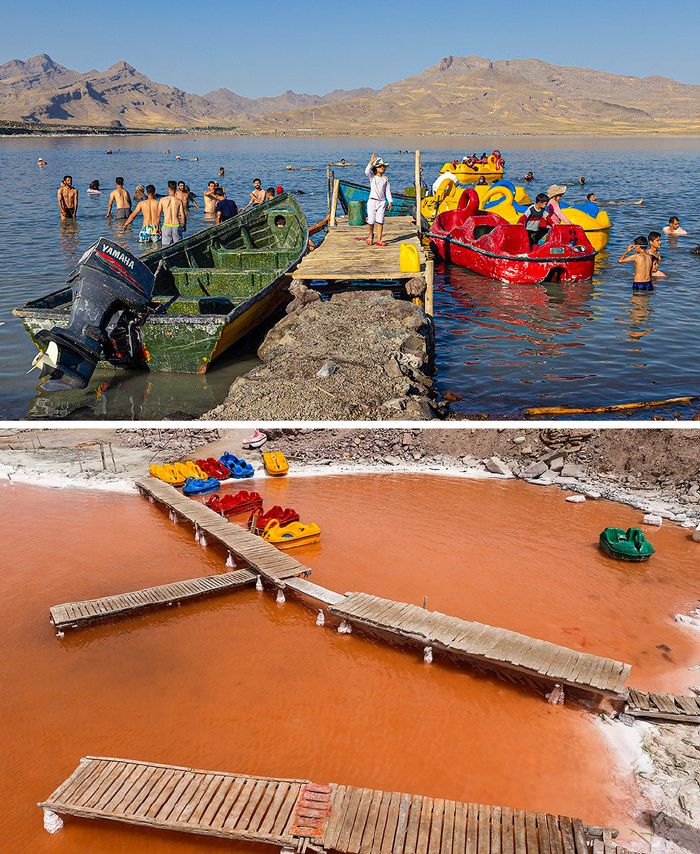 11. Az Urmia-tó pirossá változott és kiszáradóban van