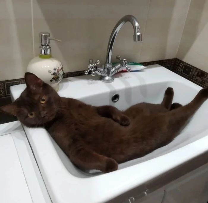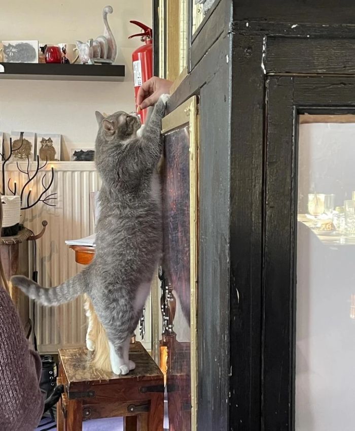 15. “Ez az illemtudó cica ételt rendel a pultnál.”
