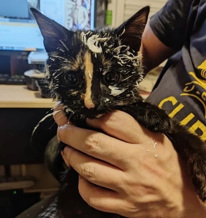 Kiderült, hogy a barátom varrta oda, hogy “valamikor később” megtaláljam, de a macska úgy döntött, hogy nincs értelme halogatni, és felgyorsította a dolgokat.