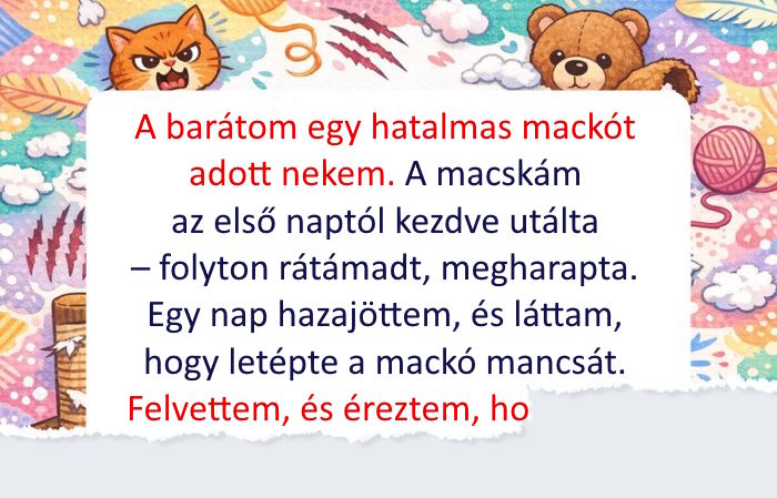 - A barátom egy hatalmas mackót adott nekem. A macskám az első naptól kezdve utálta – folyton rátámadt, megharapta.