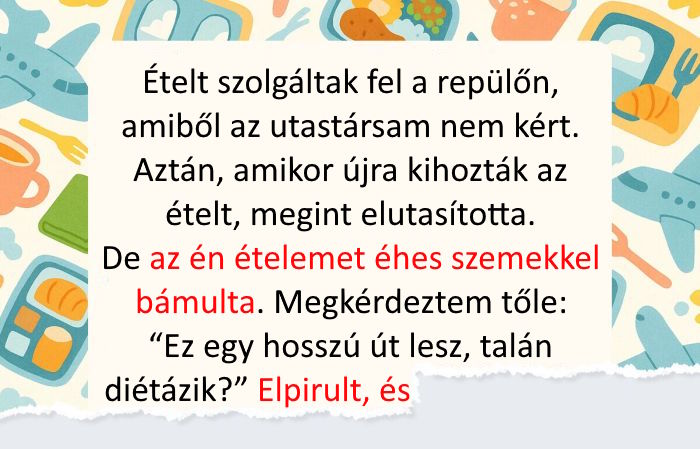 - Ételt szolgáltak fel a repülőn, amiből az utastársam nem kért. Aztán, amikor újra kihozták az ételt, megint elutasította. De az én ételemet éhes szemekkel bámulta. Megkérdeztem tőle: “Ez egy hosszú út lesz, talán diétázik?” Elpirult, és bevallotta, hogy nincs pénze ételre. Látnotok kellett volna a gyermeki örömét, mikor elmondtam neki, hogy az étel benne van a jegyárban… © Trudowick / Pikabu