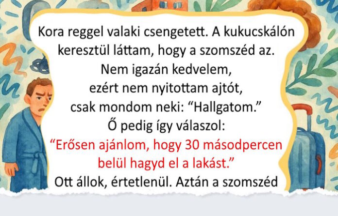 - Kora reggel valaki csengetett. A kukucskálón keresztül láttam, hogy a szomszéd az. Nem igazán kedvelem, ezért nem nyitottam ajtót, csak mondom neki: “Hallgatom.” Ő pedig így válaszol: “Erősen ajánlom, hogy 30 másodpercen belül hagyd el a lakást.” Ott állok, értetlenül. Aztán a szomszéd hirtelen azt mondja: “Különben mindent elmondok a feleségednek.” Nos, a feleség valójában én vagyok. Kiderült, hogy tegnap nem ismert fel, mikor a férjemmel voltam, mert ki voltam öltözve és magassarkút viseltem. Azért jött, hogy megóvja a házasságomat. Kiderült, hogy igazából rendes nő. © natalie.vitte / Threads
