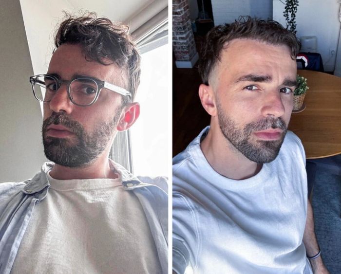 6. “Az első fotót a fodrászom készítette, hogy megmutassa az új frizurámat. A másodikat ma csináltam. Rájöttem, hogy mit próbált elrejteni a hullámokkal.”