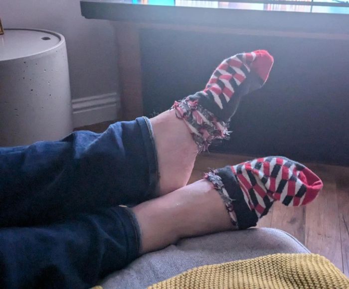 5. “A férjem így hordja a zoknit, mikor pihen.”