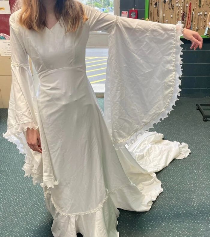 12. “Egy turkálóban dolgozom, és ezt a menyasszonyi ruhát találtam, mégpedig pont a méretemben! Imádom az ujjait!”