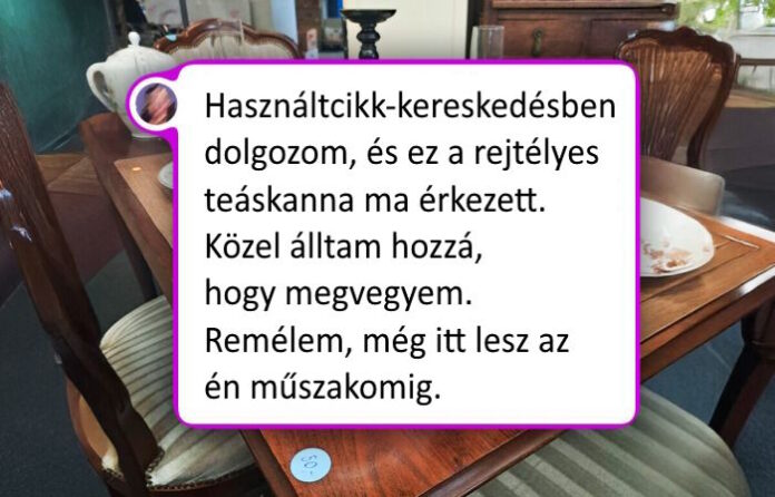 6. “Használtcikk-kereskedésben dolgozom, és ez a rejtélyes teáskanna ma érkezett. Közel álltam hozzá, hogy megvegyem. Remélem, még itt lesz az én műszakomig.”