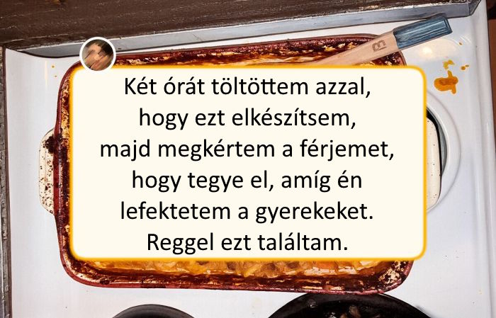 12. “Két órát töltöttem azzal, hogy ezt elkészítsem, majd megkértem a férjemet, hogy tegye el, amíg én lefektetem a gyerekeket. Reggel ezt találtam. Még mindig a tűzhelyen volt.”