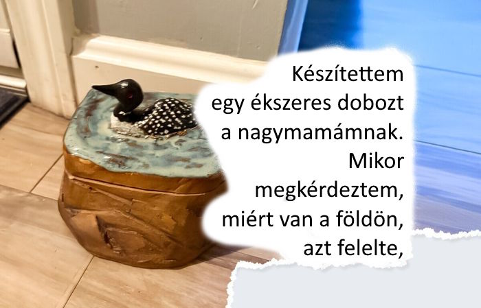 2. “Készítettem egy ékszeres dobozt a nagymamámnak. Mikor megkérdeztem, miért van a földön, azt felelte, jól néz ki.”