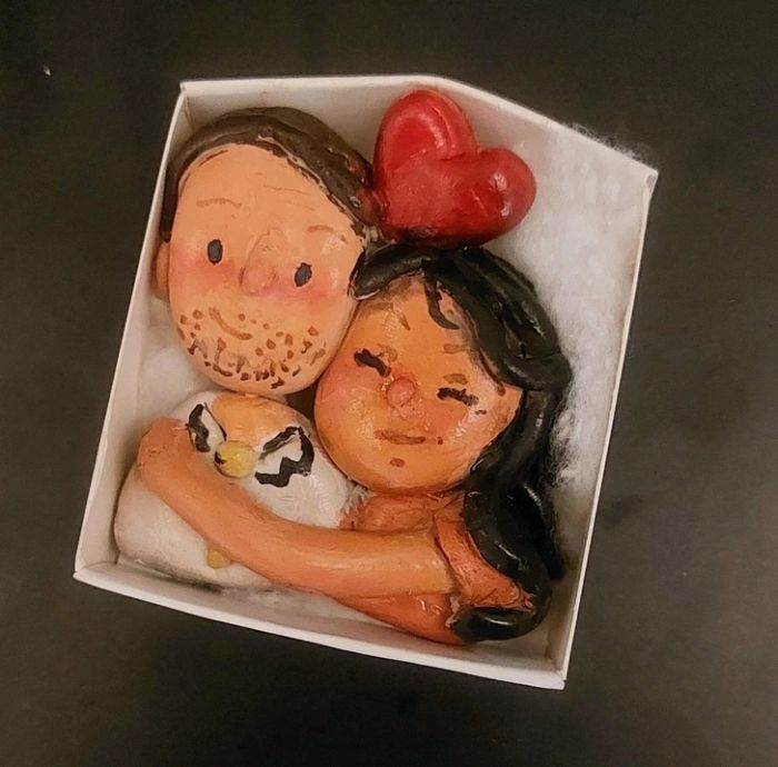 3. “Karácsonykor nem volt pénzem, ezért a páromnak egy kicsi és olcsó hűtőmágnest készítettem agyagból.”