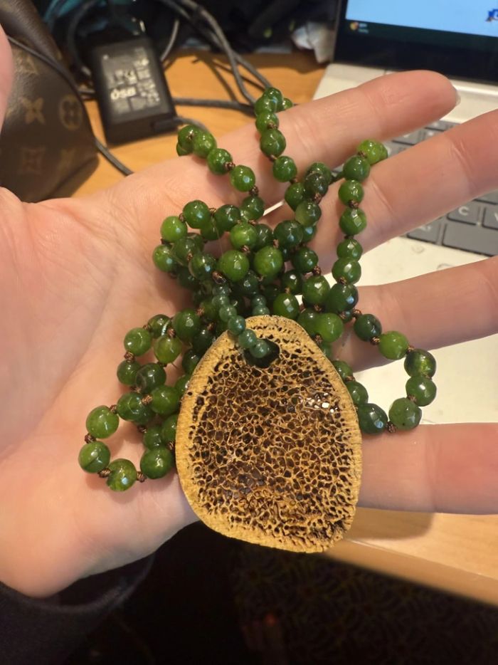 13. “Alaszkában nyaraltam. Mivel gyűjtöm az érdekes holmikat, nem tudtam ellenállni ennek a nyakláncnak, ami jádéból és fosszilizált rozmár csontból készült.”