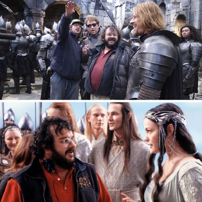 17. Peter Jackson a színészekkel A Gyűrűk Ura forgatásán.