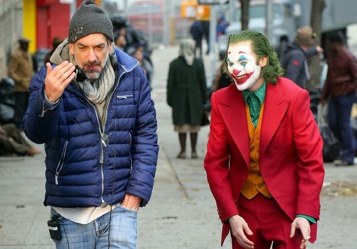 15. Todd Phillips, a Joker rendezője mond valami vicceset Joaquin Phoenixnek.