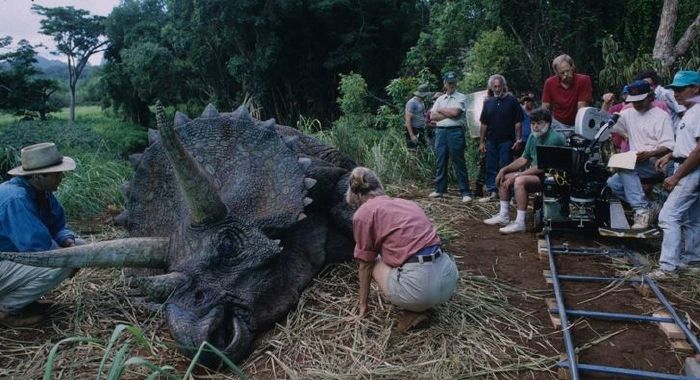 14. Laura Dern, Sam Neill és Steven Spielberg a Jurassic Park forgatásán.