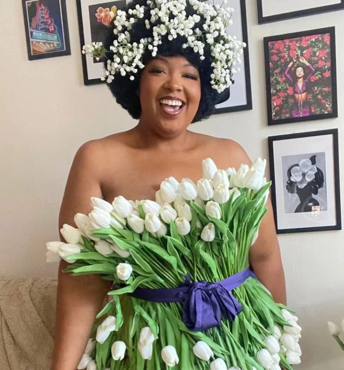 12. “Egy hagyományos fűzőre rávarrtam több mint 200 műtulipánt, és átkötöttem egy masnival. A hajamba fátyolvirágot tűztem. Egész évben arról álmodoztam, hogy majd a születésnapomra elkészítem ezt a ruhát.”