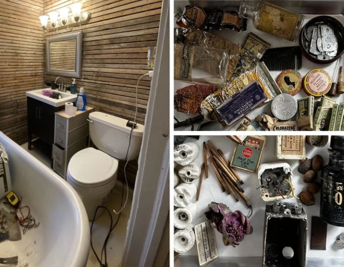10. “Egy 1915-ben épült házban lakunk. A fürdőszobát kezdtük felújítani, mikor igazi kincsekre bukkantunk a falban. Egy csomó régi kozmetikumra!”