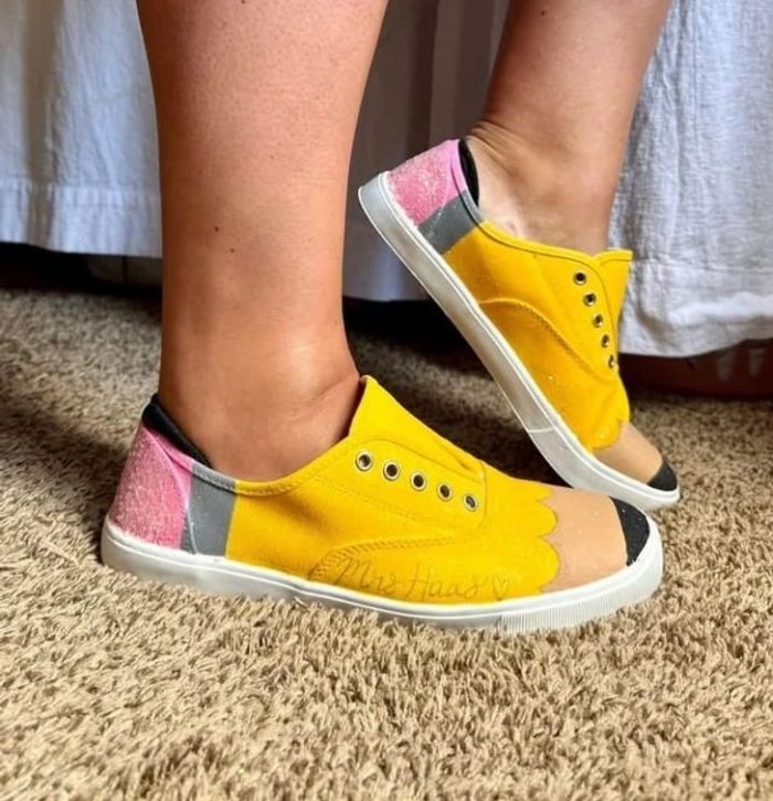 12. “Tanár vagyok, és az első napon valami menő szerkóban akartam megjelenni. Ezeket a cipőket viseltem, én festettem őket.”