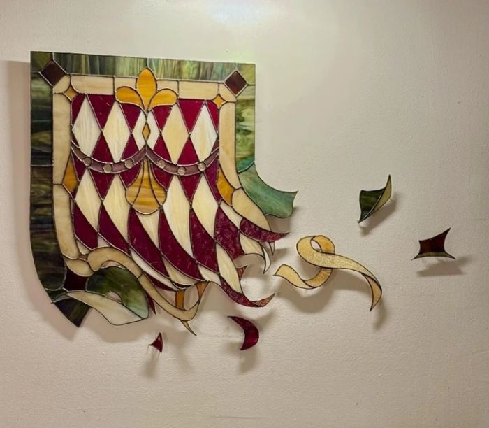3. “A nagymamám foltvarrással szokott foglalkozni, a nagyapám pedig festett üvegekkel. Miután mindketten meghaltak, én örököltem az eszközeiket. Ezt az egyik foltvarró mintájából készítettem.”