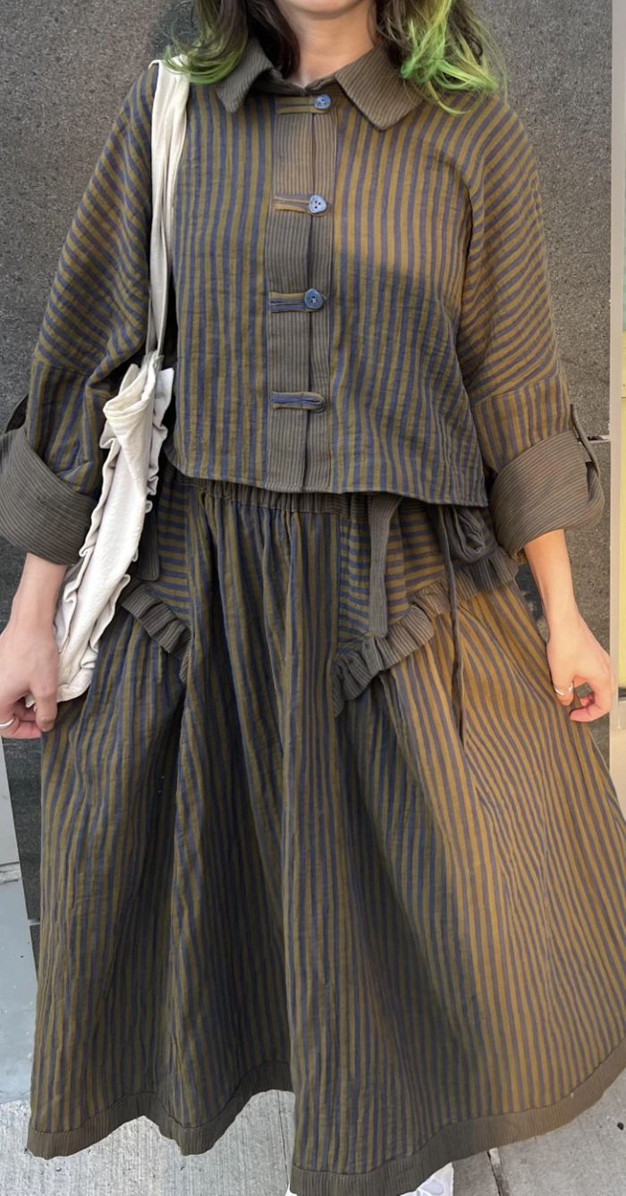 7. “Befejeztem ezt a felsőt és a hozzávaló szoknyát. A gombokat fekete porcelánból készítettem kék festékkel, amit még egy átlátszó bevonattal is lekentem.”