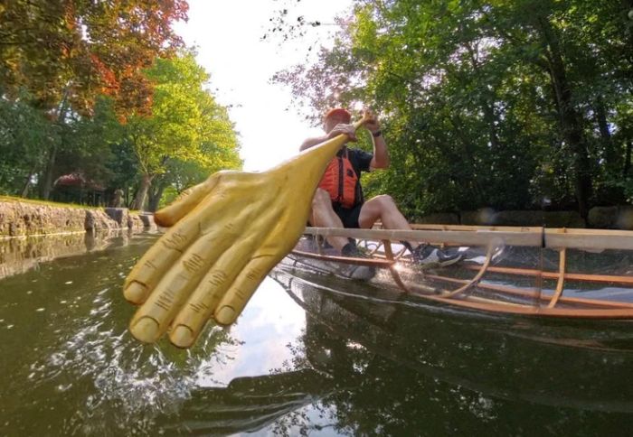4. “Csináltam egy kéz alakú evezőt. Mikor az emberek integetnek, visszaintegetek nekik…az evezőmmel.”