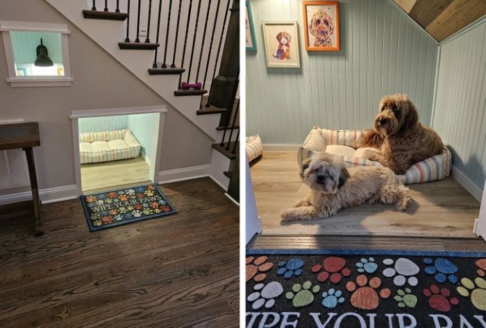 2. “A nyári projektünk az volt, hogy építettünk egy kutyalakot a lépcső alá.”
