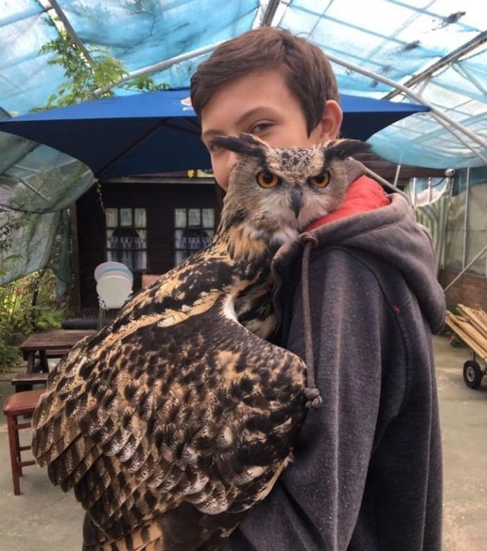 “Egy nagyon haragos tekintetű eurázsiai bagoly ölel át.”