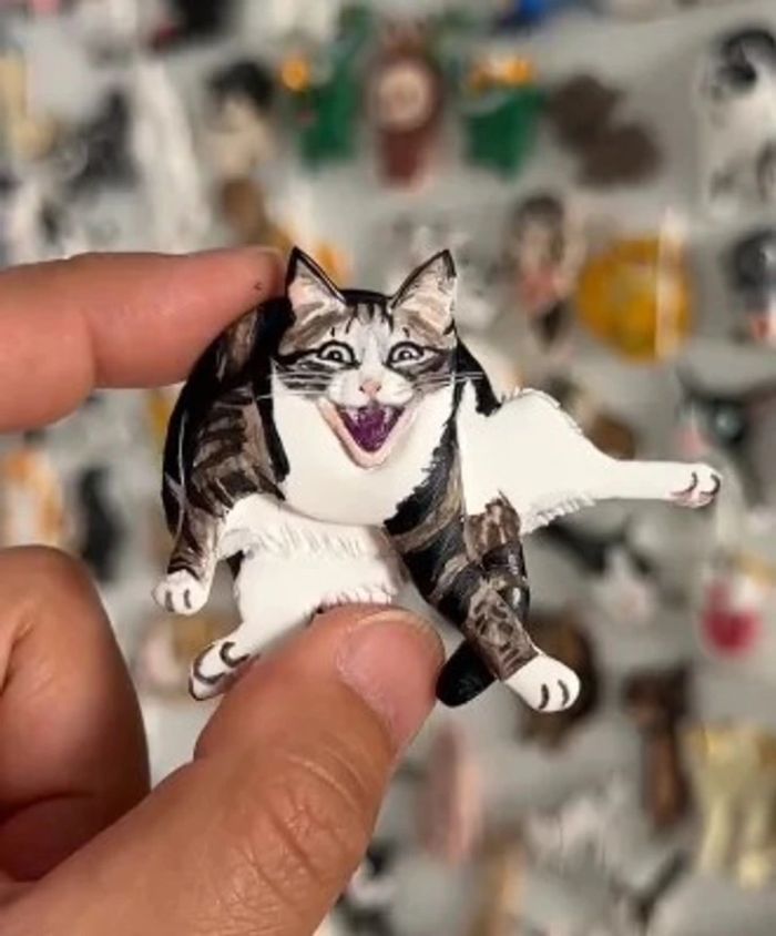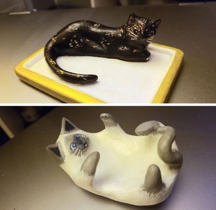 22. “Van egy vicces fotóm a macskámról. Az alapján készítettem agyagból ezt a hűtőmágnest.”