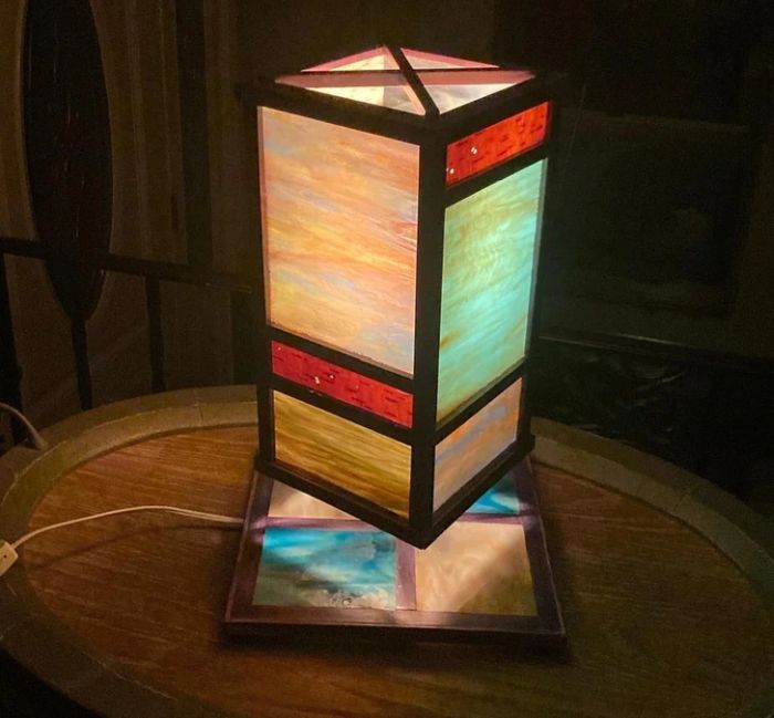 31. “A párom festett üvegből és fából készítette ezt a lámpát.”