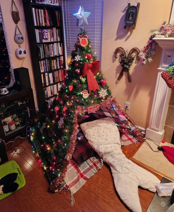 29. “A lányom látott egy fotót egy karácsonyi sátorról, és ő is akart egyet. Nem vagyok nagy ezermester, de pár nap alatt megcsináltam. Most ott olvas.”