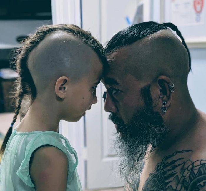 24. “A 6 éves lányom hónapok óta könyörgött, hogy hadd legyen olyan mohikán frizurája, mint az apjának. Ma megcsináltam neki. Nagyon vagány gyerekem van.”