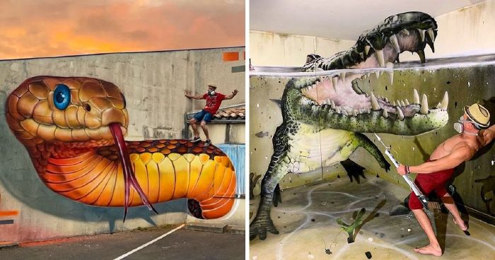 Scaf_oner, a francia művész elképesztően valósághű alkotásaival lehel új életet elhagyott épületekbe és utcákba. 3D-s festményein általában állatokat ábrázol. Korábban már közzétettünk egy összeállítást a munkáiból, és mivel a tehetséges festő nem állt le a munkával, úgy döntöttünk, hogy újra áttekintjük a művészetét.
