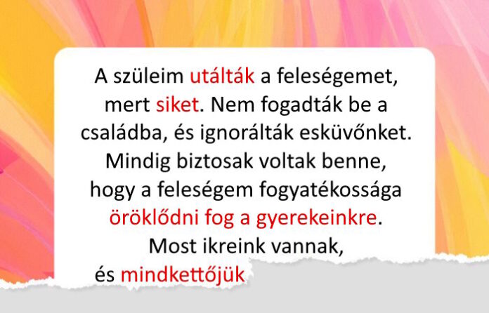 Az egyik kommentelő hozzátette: “Ha az unokák is siketek lennének, kétlem, hogy a nagyszülők meggondolták volna magukat, sőt, inkább még igazolva látták volna az elutasításukat. Vajon akkor is részesei szeretnének lenni az unokák életének, ha azok közben elvesztenék a hallásukat vagy más fogyatékosságuk fejlődne ki? És ha így lenne, mindenért a fiuk feleségét hibáztatnák?
